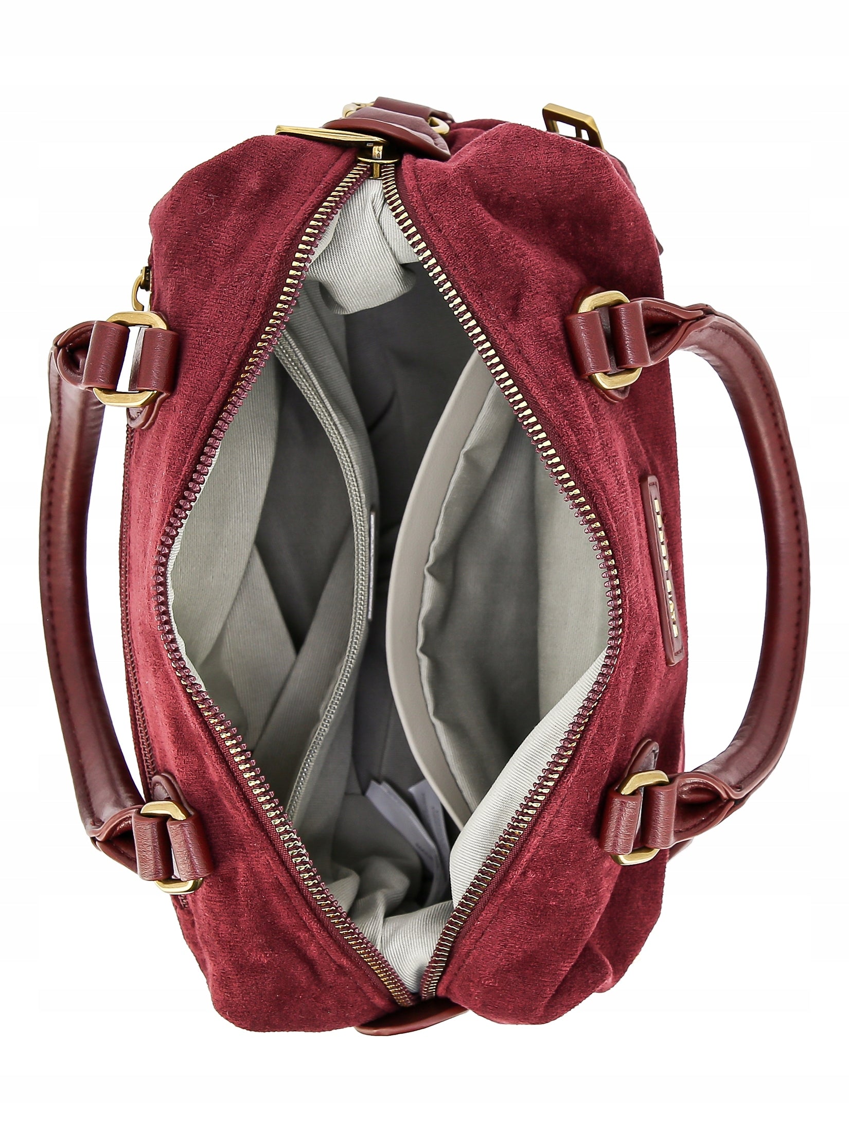 • W środku: otwarta kieszonka z przodu i kieszonka zamykana na suwak z tyłu
