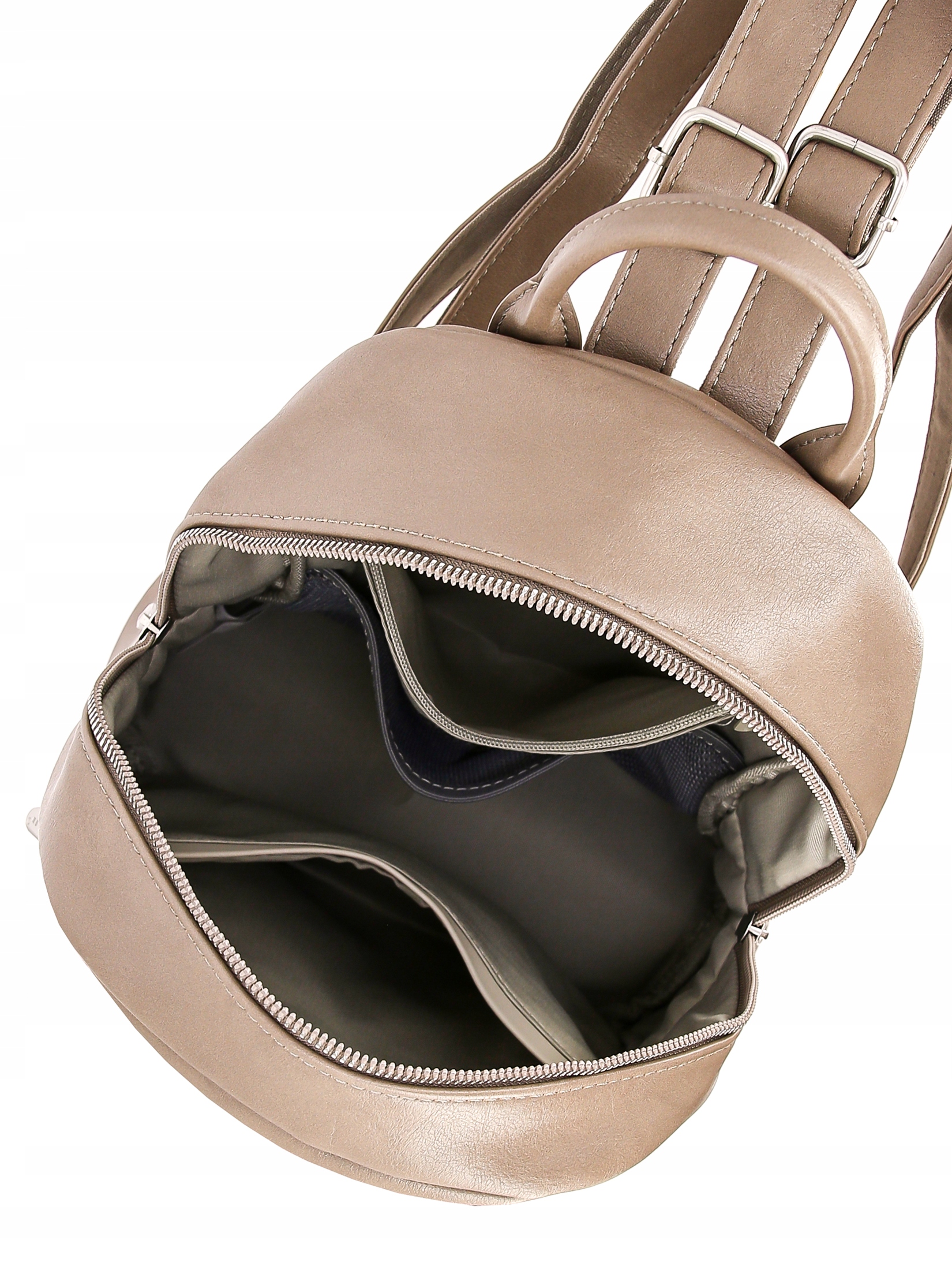 • W środku: otwarta kieszonka z przodu; otwarta kieszonka i kieszonka zamykana na suwak z tyłu