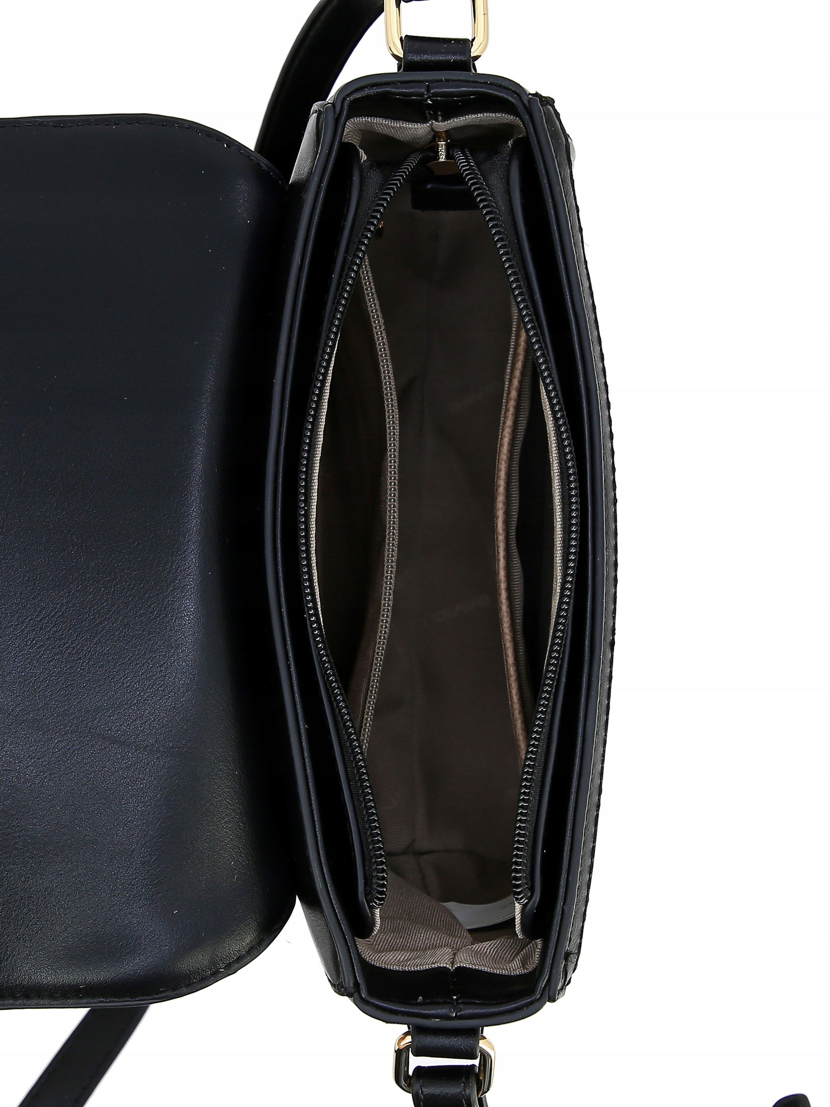 - W środku: otwarta kieszonka i kieszonka zamykana na suwak