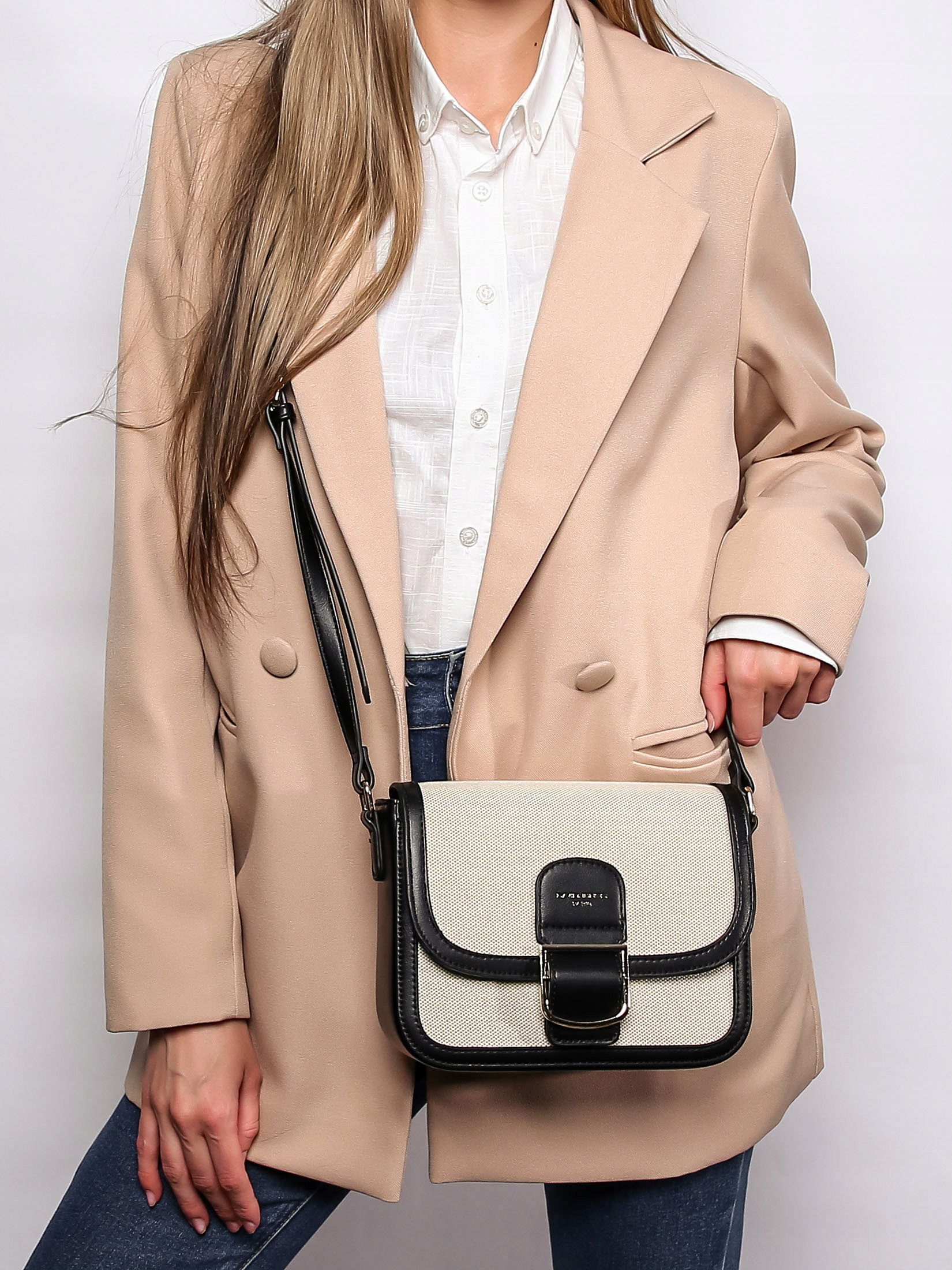 Torebka listonoszka David Jones skóra ekologiczna, płótno